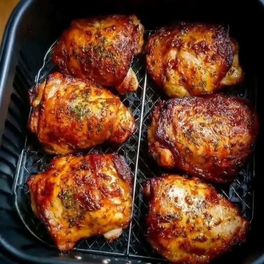 2. Chicken thighs ko basket mein skin side down rakhein.