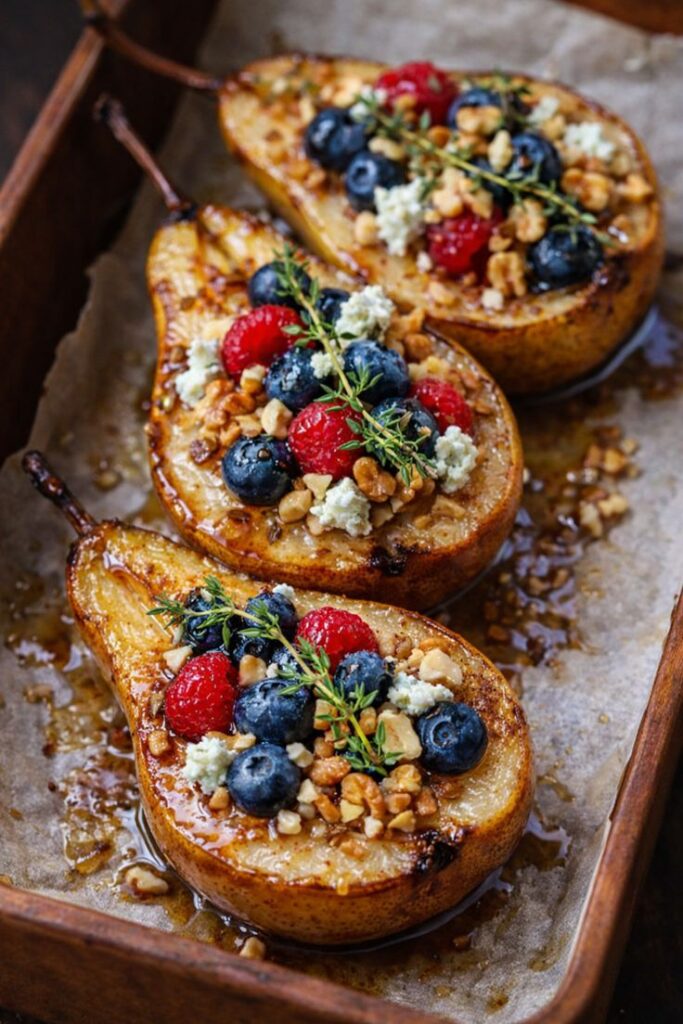 Anti-Inflammatory Baked Pears with Berries, Honey & Nuts is a comforting, naturally sweet dessert made with whole, healing ingredients. Juicy pears are baked until tender, then topped with antioxidant-rich berries, raw honey, and crunchy nuts.
